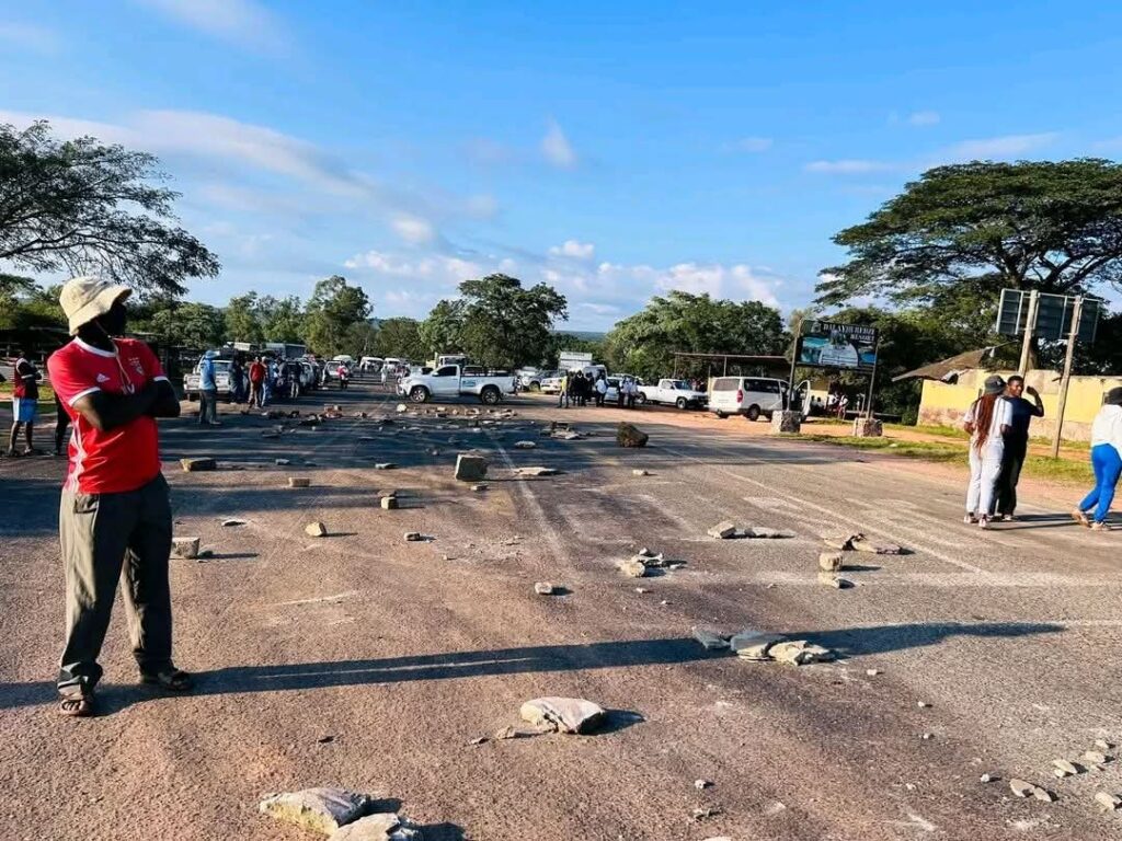 Frustrated residents from over 20 villages in Vhembe took to the streets after flood damage washed away the only access road, leaving thousands cut off from schools, work, and essential services. Picture Credit: Supplied